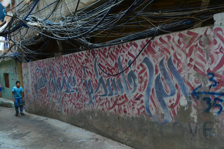 MIDDLE EAST EYE (14/9/2017) Streets are dim and narrow in the Palestinian refugee camp of Burj al-Barajneh, in southern Beirut. Walls are
