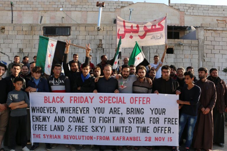 QANTARA DW (22/11/2019) “Black Friday Special Offer“ read a banner held by activists in Kafranbel, a small town in northern Syria. “Bring your enemy